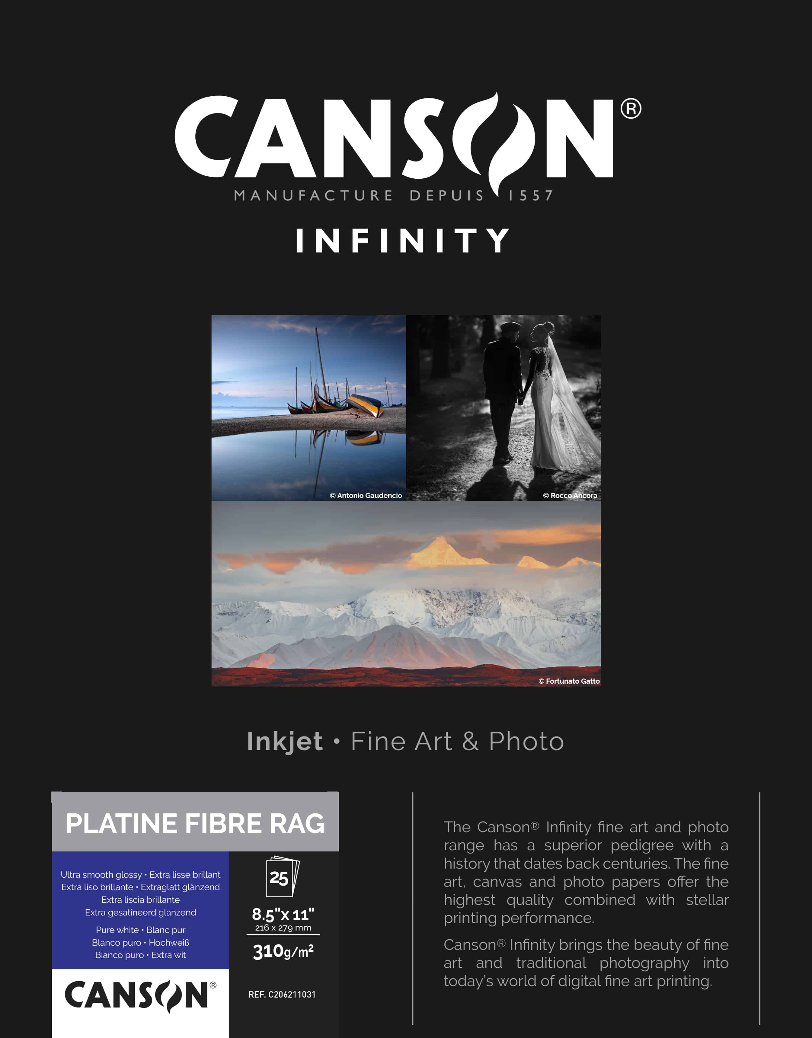 Serious photographers demand perfection—and Canson® Infinity Platine Fibre Rag delivers the ultimate fusion of traditional darkroom aesthetics and modern inkjet technology.